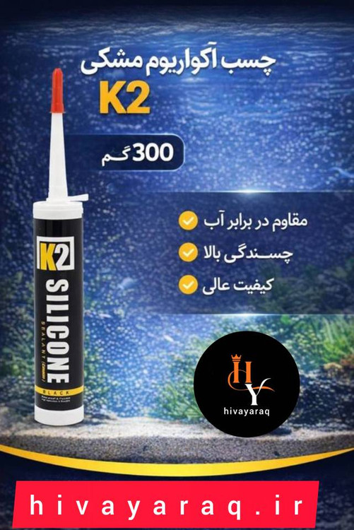 (یا نسخه مشابه در سایز K2 با رنگ مشکی) نمونهای از چسبهای سیلیکونی آکواریومی و درزگیر است که برای اتصال و آببندی سطوح شیشهای، کاشی، فلز و دیگر مصالح مورد استفاده قرار میگیرد. این نوع چسب بر پایه سیلیکون ساخته شده و هدفش ایجاد اتصالات ضد آب و مقاوم در برابر رطوبت است که برای سازههای آکواریومی و کاربردهای مرطوب مناسب باشد.