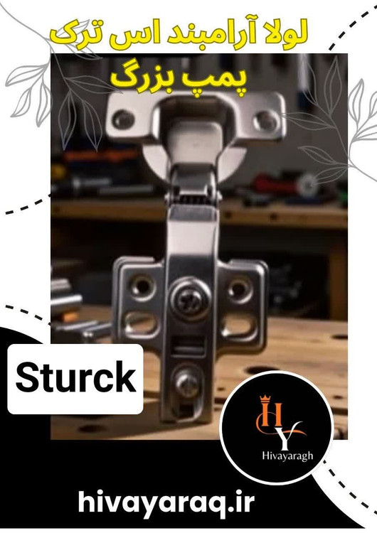 این یکی از مدلهای لولای آرامبند کابینتی با نام برند اس ترک (Sturk) است که در بازار ایران محبوب شده. نوع پایهاش جتی (موشکی) و پمپ داخلش بزرگ و برنجی بوده که برای عملکرد آرامبند استفاده میشود.