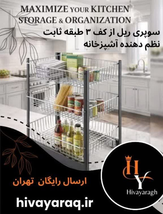 سوپری ریل از کف ۳ طبقه ثابت یک راهکار کاربردی برای نظمدهی فضای داخل کابینت آشپزخانه است. این محصول روی کف کابینت نصب میشود و با داشتن سه طبقه مجزا، امکان دستهبندی و دسترسی آسان به اقلام پرمصرف مانند مواد غذایی، بطریها و ظروف را فراهم میکند.